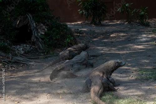 Fototapeta premium The ferocity of Komodo dragons when they eat their prey with their sharp...
