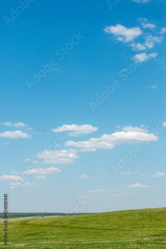 © EvgenyPyatkov, Fototapeta premium The field is green and the sky with clouds