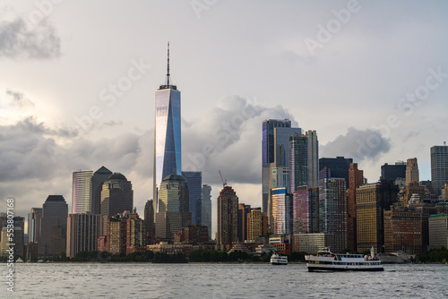 © Ondrej Bucek, Obraz premium The financial district in the lower Manhattan in New York City with stormy clouds in background.