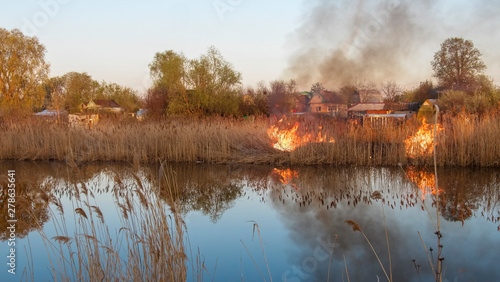 Fototapeta premium the fire on a pond fire runs high