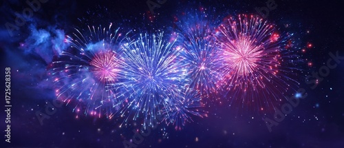© Ol, Fototapeta premium The Fireworks Spectacular Lighting Up A Starry Night Sky With Vibrant Colors