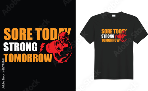 © Arif, Obraz premium The fitness motivational typography Editable Print Ready Perfect Vector T-shirt design. The gym custom exercise merchandising Workout color shirt mug, boys and girls, design template and concept.