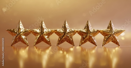 © Studio Nova, Obraz premium The Five Gold Stars Lined Up on a Reflective Warm Background with Bokeh