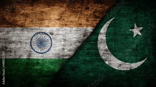 © tope007, Fototapeta premium The flag of India and Pakistan are displayed on a wall