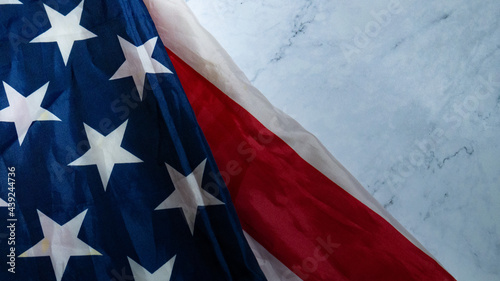 Fototapeta premium The Flag of United States of America on marble image for American freedom and Independence or Background with copy space concept..