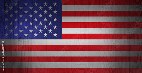 Fototapeta premium The flag of Unites States on wooden background. USA symbol. Grunge American flag.