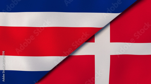 © Maksym Kapliuk, Fototapeta premium The flags of Costa Rica and Denmark. News, reportage, business background. 3d illustration