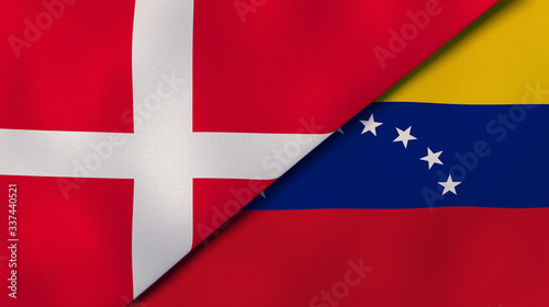 © Maksym Kapliuk, Fototapeta premium The flags of Denmark and Venezuela. News, reportage, business background. 3d illustration