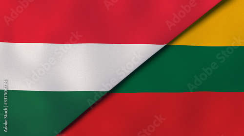 © Maksym Kapliuk, Naklejka premium The flags of Hungary and Lithuania. News, reportage, business background. 3d illustration