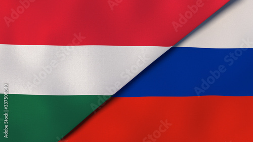 Naklejka premium The flags of Hungary and Russia. News, reportage, business background. 3d...