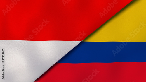 © Maksym Kapliuk, Naklejka premium The flags of Indonesia and Colombia. News, reportage, business background. 3d illustration
