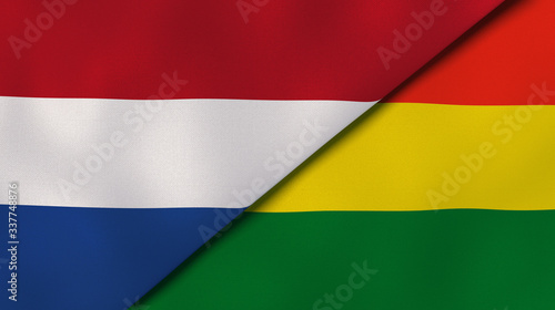 Naklejka premium The flags of Netherlands and Bolivia. News, reportage, business background....