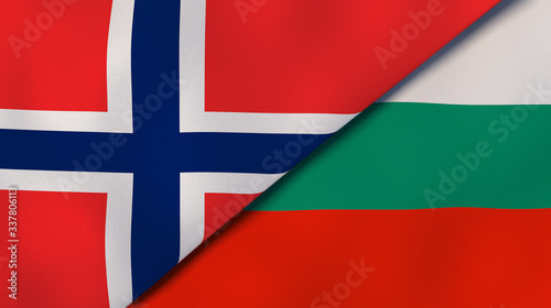 © Maksym Kapliuk, Fototapeta premium The flags of Norway and Bulgaria. News, reportage, business background. 3d illustration