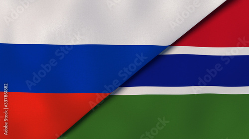 © Maksym Kapliuk, Fototapeta premium The flags of Russia and Gambia. News, reportage, business background. 3d illustration