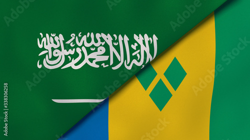 © Maksym Kapliuk, Fototapeta premium The flags of Saudi Arabia and Saint Vincent and Grenadines. News, reportage, business background. 3d illustration