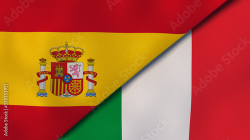 Obraz premium The flags of Spain and Italy. News, reportage, business background. 3d illustration