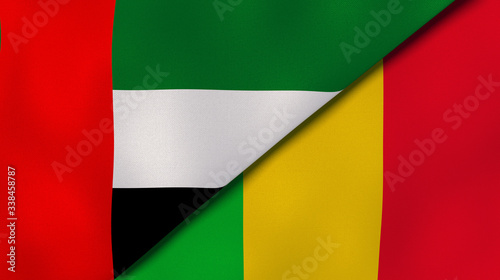 Fototapeta premium The flags of United Arab Emirates and Mali. News, reportage, business...
