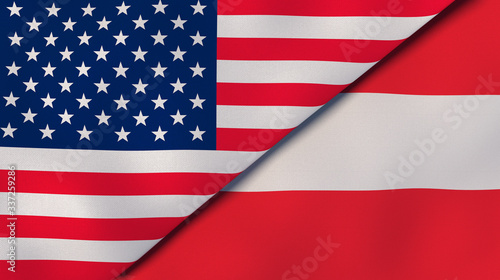 Naklejka premium The flags of United States and Austria. News, reportage, business background....
