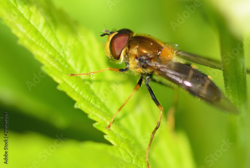 © borroko72, Fototapeta premium The fly sits on a green sheet.
