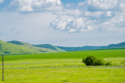 Fototapeta premium The forest and big grassland in Hulunbuir, Inner Mongolia, China.