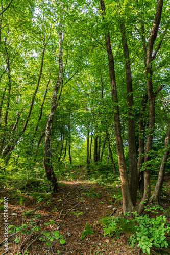 Fototapeta premium The forest and nature during spring in the Italian alps near the town of Eupilio, Lombardy, Italy - May 2020.