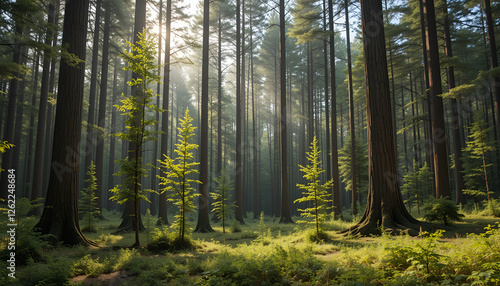 © bloDaily, Obraz premium The forest has young trees, big trees, and wide and tall forests.