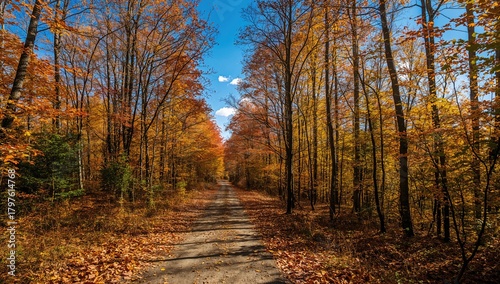 © vxnaghiyev, Fototapeta premium The forest trail during a bright autumn day, seasonal change