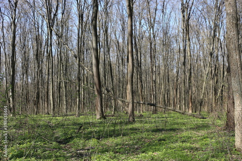 Obraz premium The forest wakes up in the spring. The grass and trees have turned green