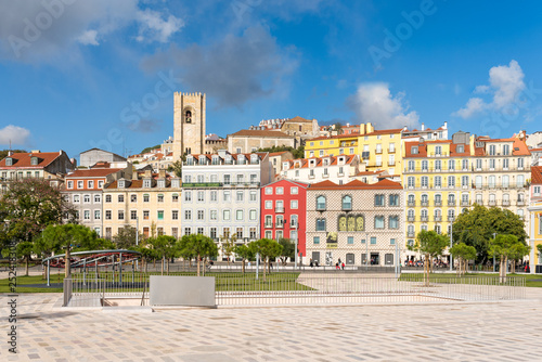 © ksl, Fototapeta premium The former parking lot at the Campo das Cebolas, now a new green area and public space in the Alfama district of Lisbon