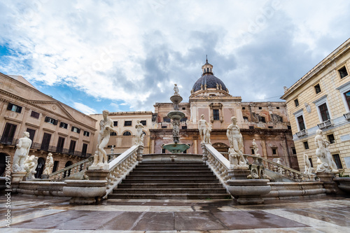 © LugonesLeandro, Obraz premium The fountain pretoria, The most popular monument of Sicily, Italy.