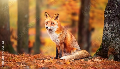 © Isabella, Naklejka premium the fox is sitting in the autumn forest