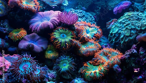 © ZeNDaY, Fototapeta premium The fractal patterns visible in coral reefs under shallow waters