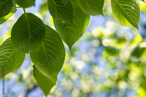 © J. studio, Fototapeta premium the fresh and cool green leaf of spring and summer shining in the sun