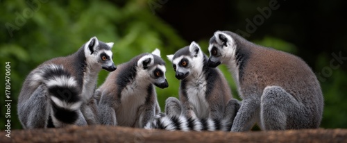 © ckybe, Obraz premium The friendly group of lemurs participated in gentle mutual cleaning behavior together.