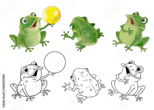 Fototapeta premium The Frog Prince. Fairy tale. Coloring page. Illustrations for children. Cute and funny cartoon characters isolated on white background