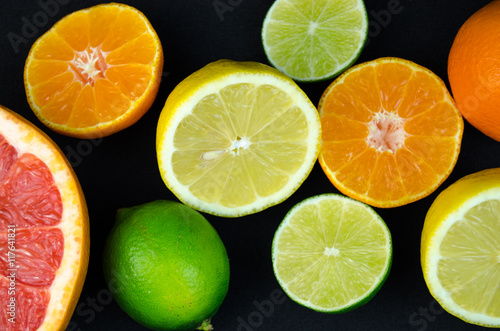 Obraz premium The fruits of lemon, lime, mandarin, grapefruit.
