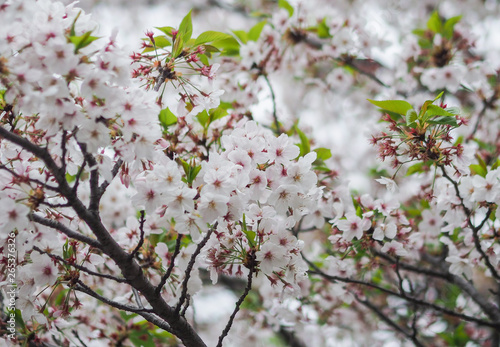 Fototapeta premium The full blooming cherry blossom in the park.