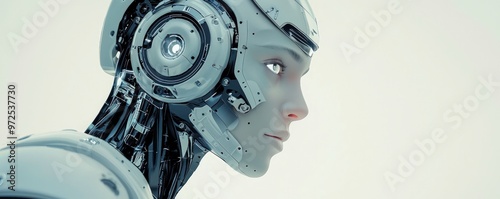 © peerasak, Fototapeta premium The Future is Now Close-Up Portrait of a Humanoid Robot.
