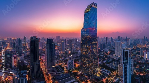 Obraz premium The futuristic architecture of Bangkok building, one of the tallest skyscrapers.