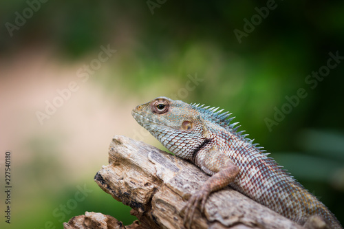 © Robbie Ross, Obraz premium The Garden Lizard sitting on the flower plant on a beautiful spring morning in its natural habitat.