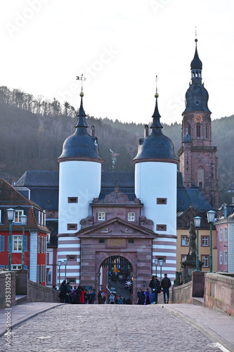 Obraz premium the gate at the end of the old bridge in Heidelberg, Germany