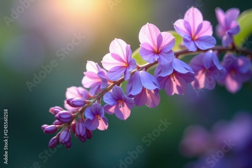 Obraz premium The gentle curves of a wisteria bloom in shimmering colors, flower, abstract,...