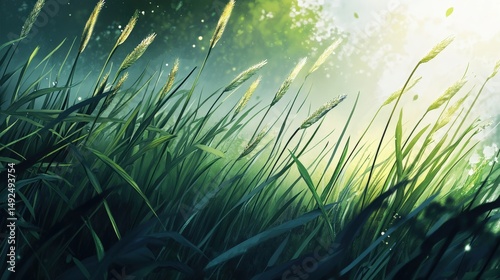 © Wicha1, Fototapeta premium The gentle sway of tall grass, each blade of grass stretching towards the sky.