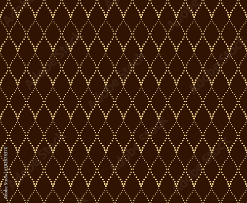 © ELENA, Fototapeta premium The geometric pattern with wavy lines, points. Seamless vector background. Dark brown and gold texture. Simple lattice graphic design