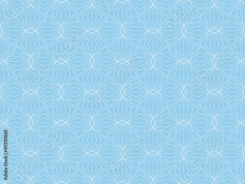 © ELENA, Fototapeta premium The geometric pattern with wavy lines. Seamless vector background. White and blue texture. Simple lattice graphic design