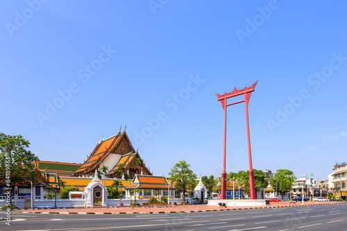 Naklejka premium The giant swing (Sao Ching Cha) and Wat Suthat temple in Bangkok