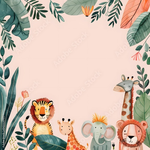Fototapeta premium The giraffe is looking to the right and the tiger is looking to the left