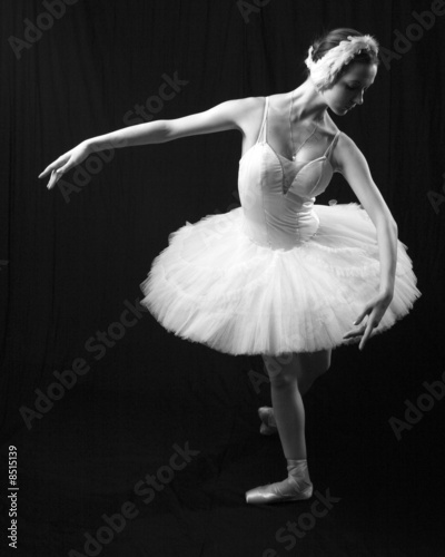 © Denis Goncharov, Naklejka premium The girl in a ballet suit on a black background