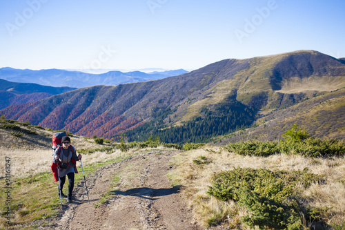 © zhukovvvlad, Fototapeta premium The girl in the mountains.