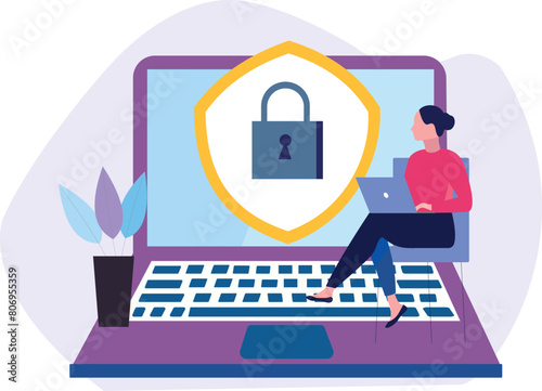 © Flaticons, Fototapeta premium The girl is using a laptop.